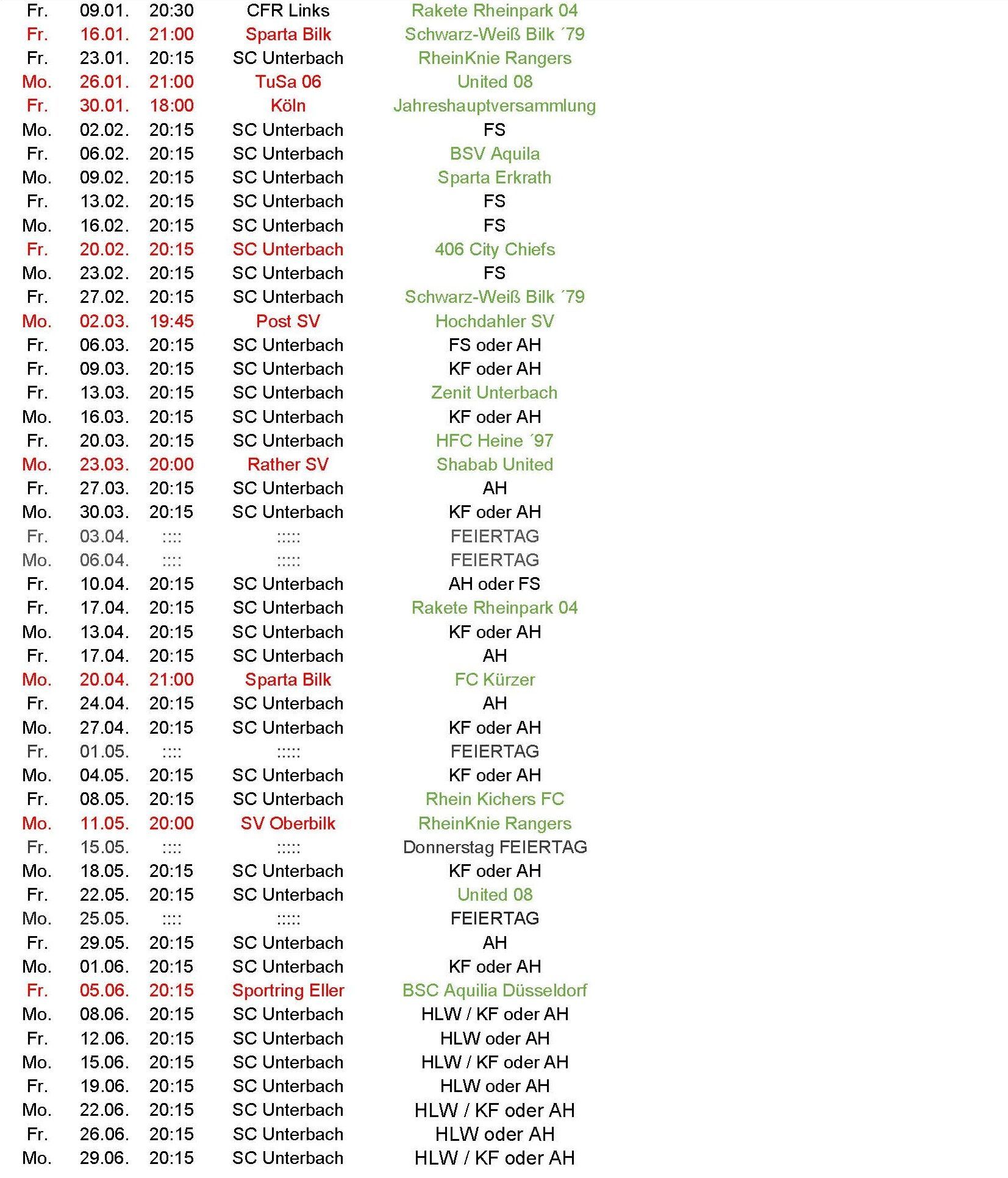 Heimspiele: HLW, AH-Team und KF-Team jeweils am Montag und/oder Freitag 20:15 Uhr beim SC Unterbach - Niermannsweg 10 - 40699 Erkrath-Unterfeldhaus