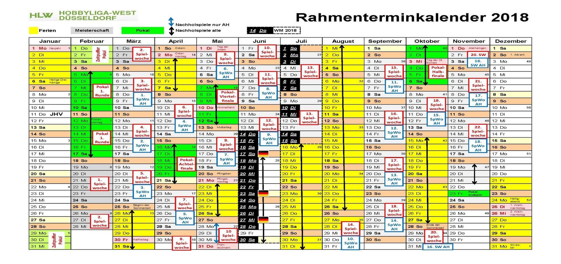 Gesamt Spielplan 2018 für Hobbyliga-, AH-Liga- und Kleinfeldteam