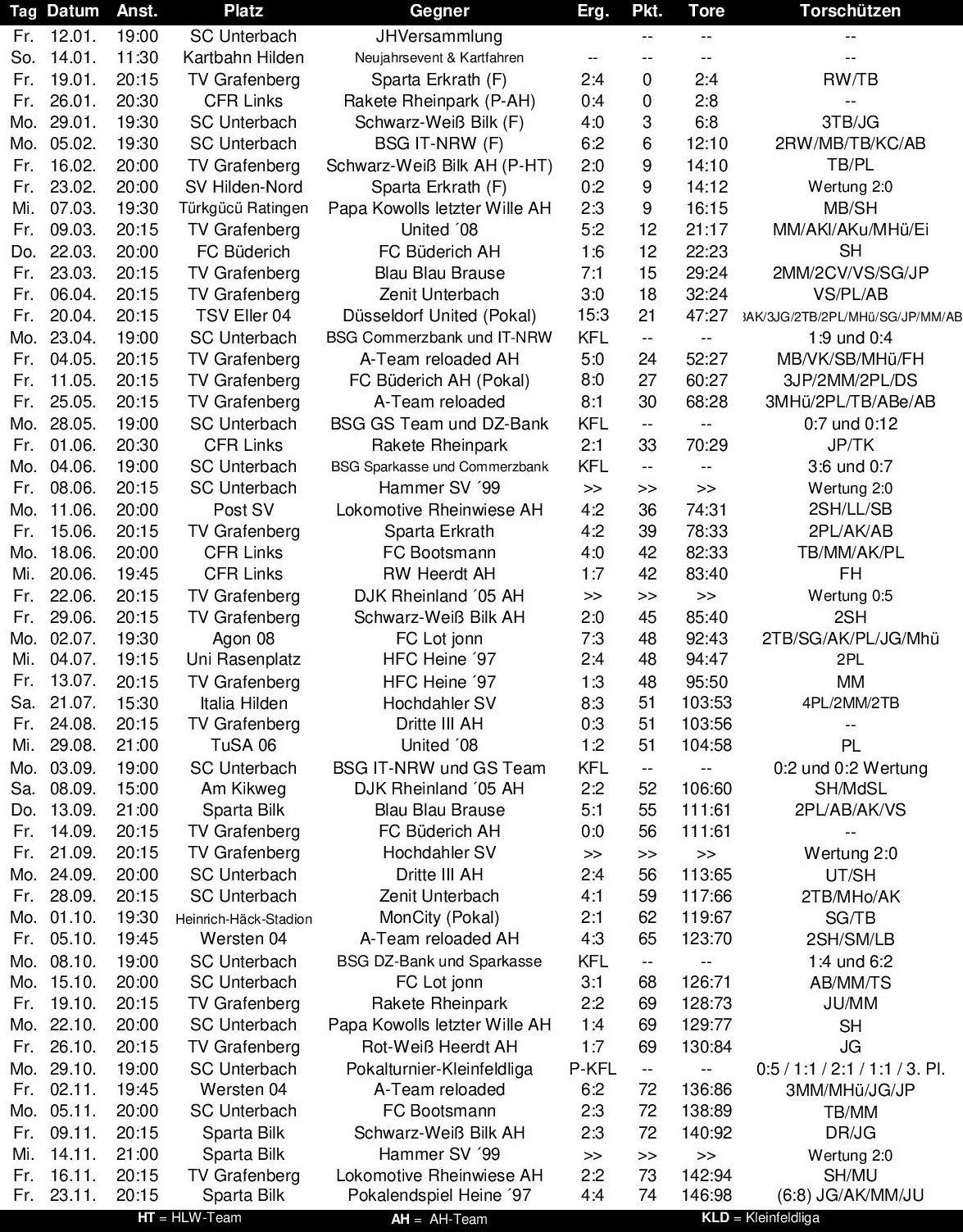 Spielplan 2018 HLW-Team