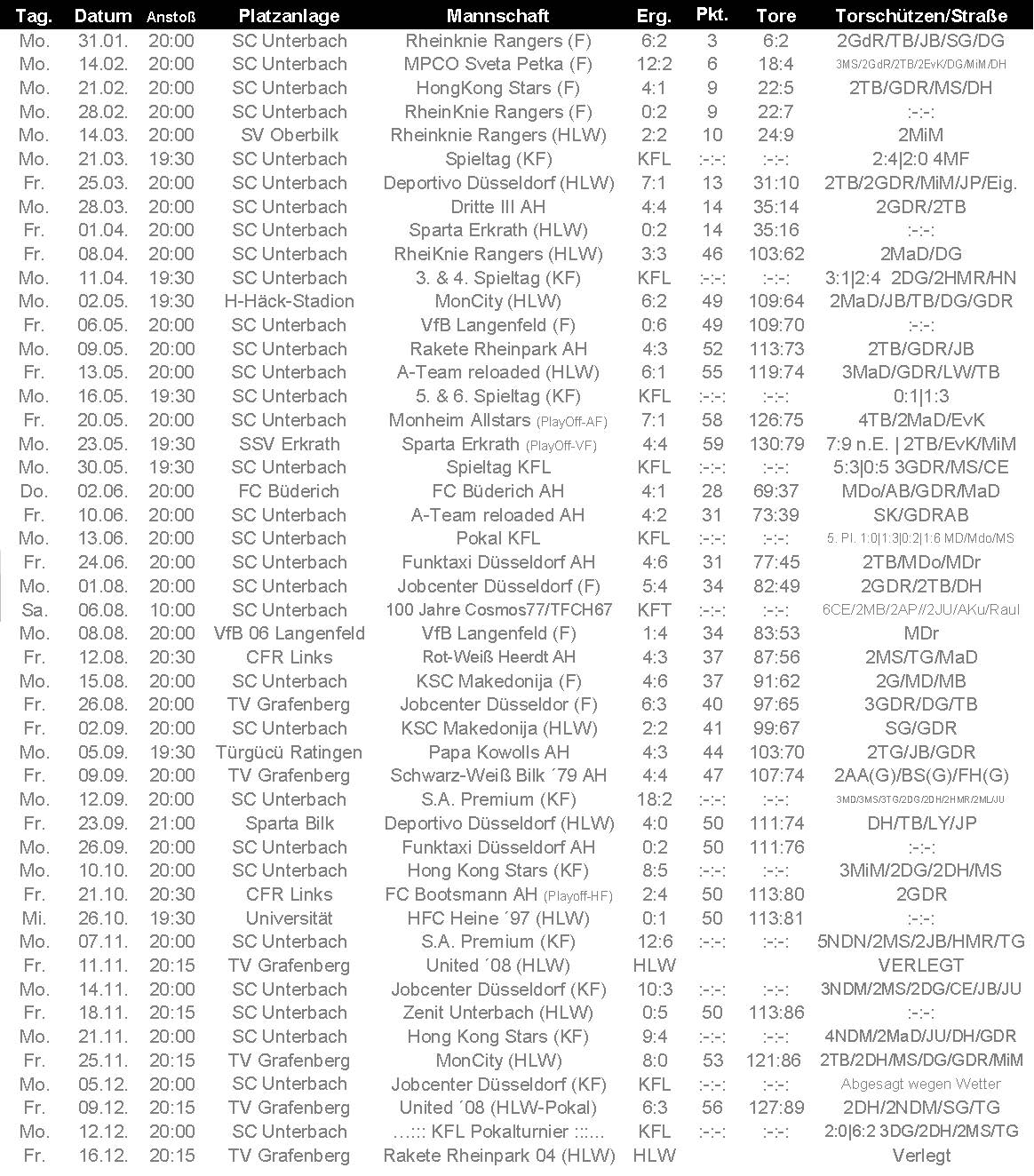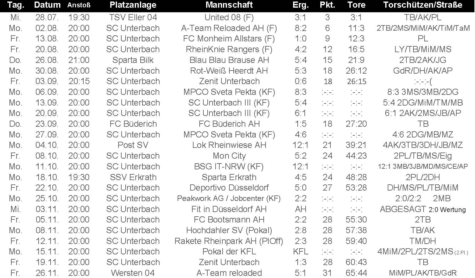 AH-Team und KF-Team jeweils Montag 20:00 Uhr beim SC Unterbach - Niermannsweg 10 - 40699 Erkrath-Unterfeldhaus