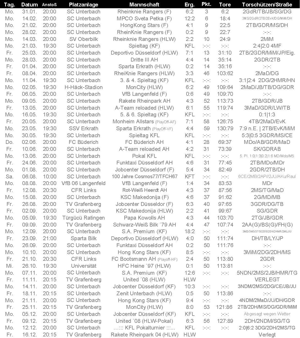 Heimspiele: HLW, AH-Team und KF-Team jeweils am Montag und/oder Freitag 20:00 Uhr beim SC Unterbach - Niermannsweg 10 - 40699 Erkrath-Unterfeldhaus